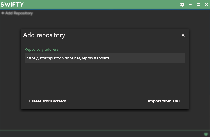 Type in https://stormplatoon.ddns.net/repos/standard/ under Repository address and click Import from URL in the bottom right.