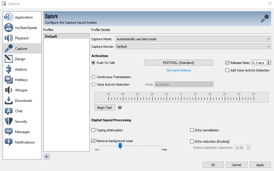 After the hotkey is set you can switch back to Voice Activity Detection.